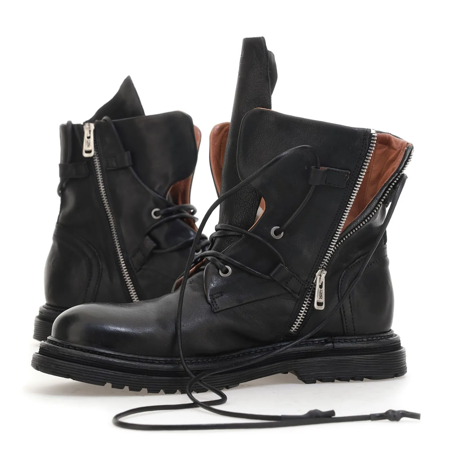 Die Static-Kollektion für Herren aus 100 % italienischem Leder vereint verschiedene Konzepte zu einem einzigartigen Ergebnis. Die Mokassins haben ein minimalistisches Design, während die Schuhe das Konzept der Neuzusammensetzung leben. Die Stiefel gehen zwei verschiedene Wege: Sie tauchen in die Welt des Westerns ein oder sind von der japanischen Kultur inspiriert, was zu Stiefeln führt, die an den Samurai-Stil erinnern.